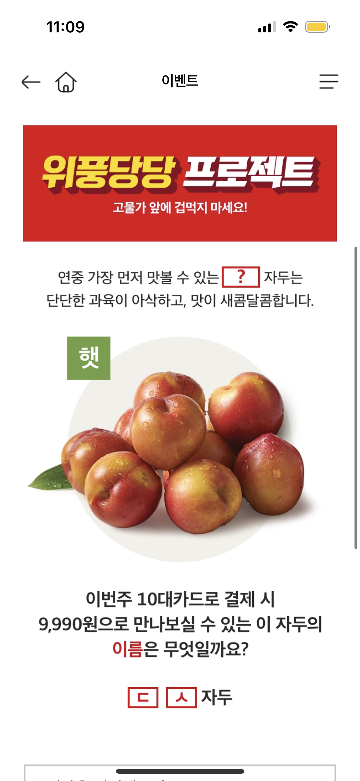 2023년 6월 26일 마이홈플러스 퀴즈 11시 정답