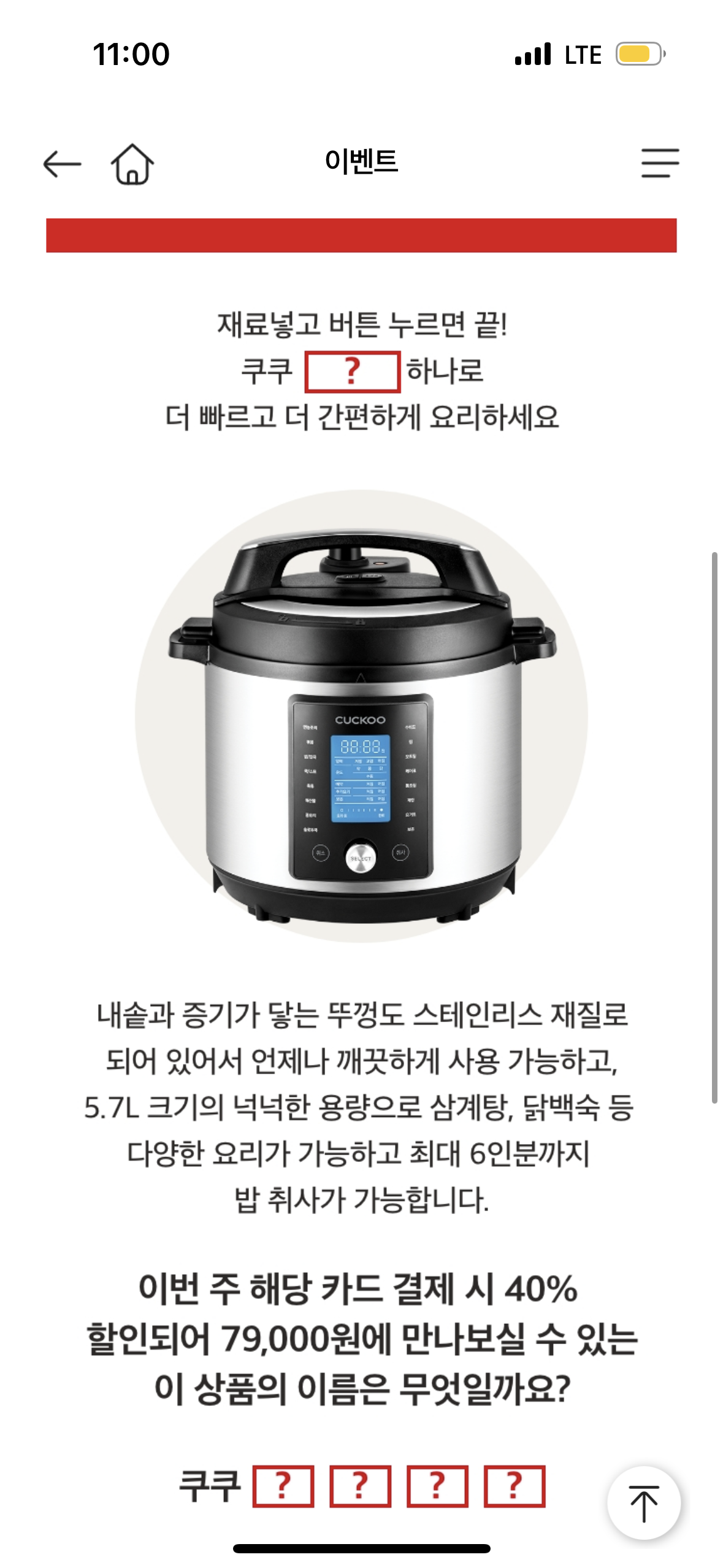 2023년 7월 22일 마이홈플러스 퀴즈 11시 정답