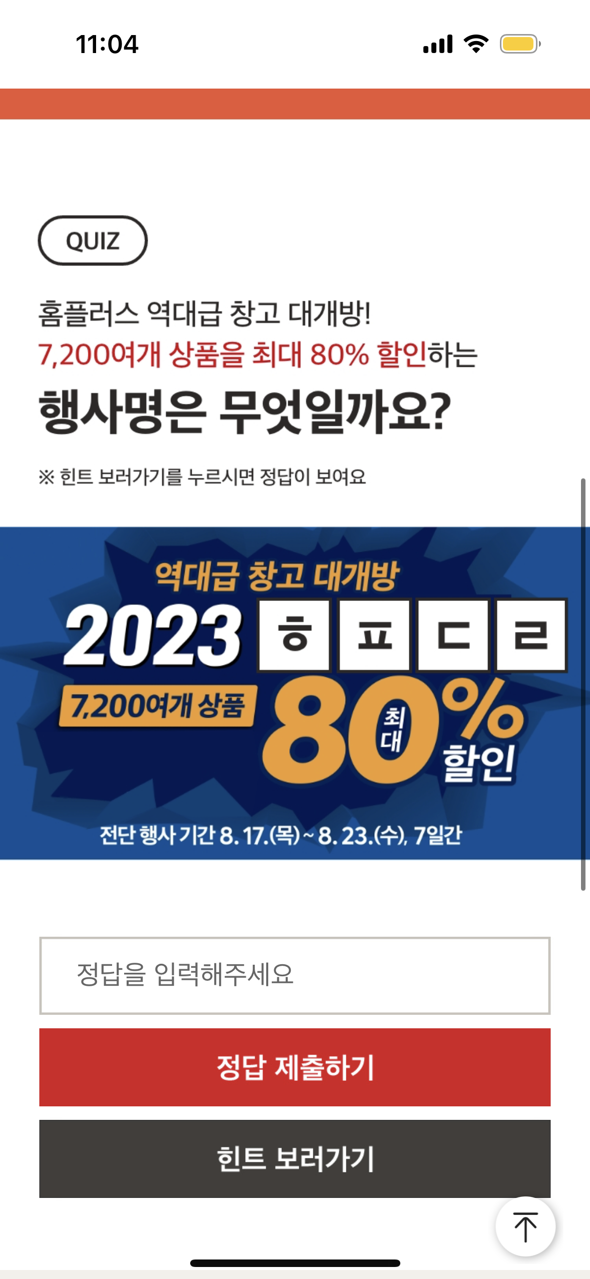 2023년 8월 17일 마이홈플러스 퀴즈 11시 정답