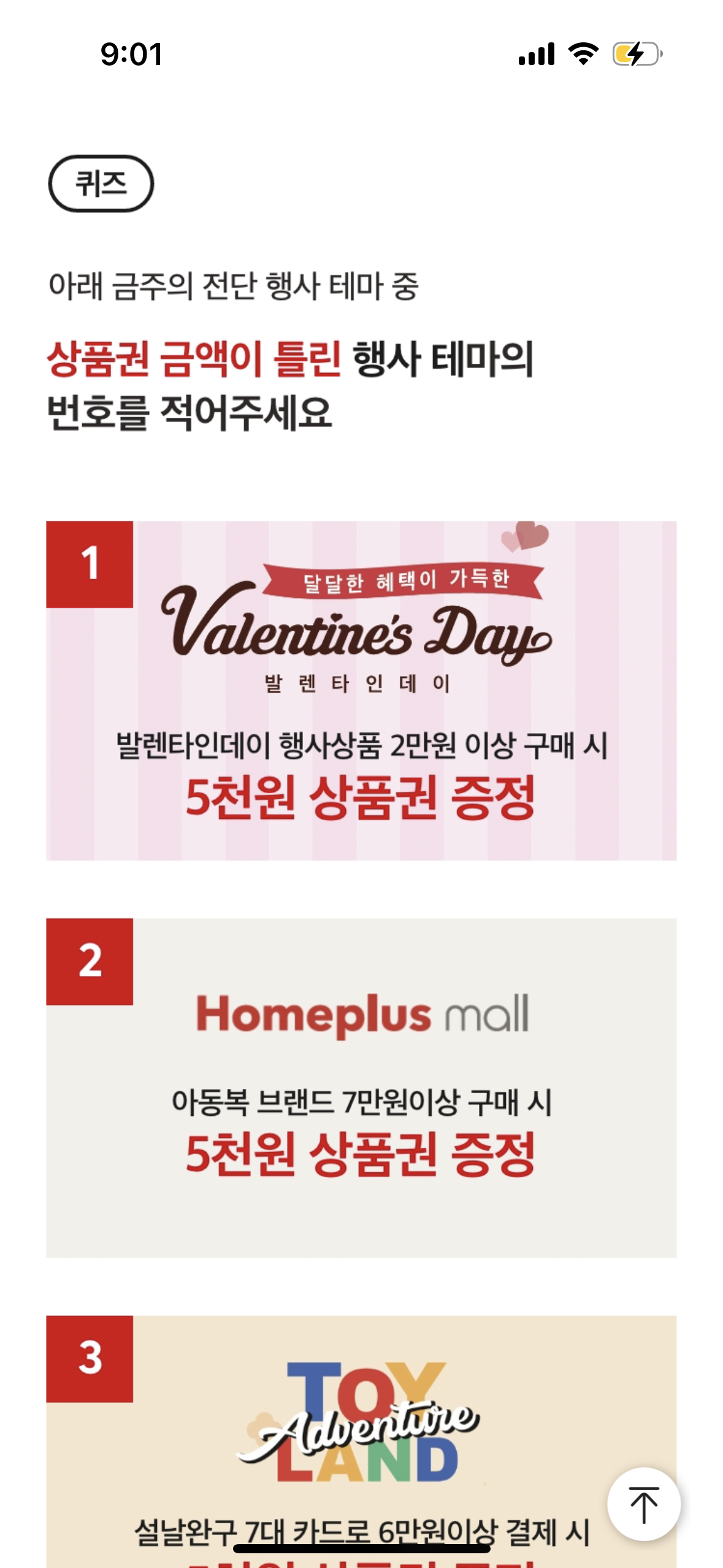 2024년 2월 8일 마이홈플러스 퀴즈 9시 정답