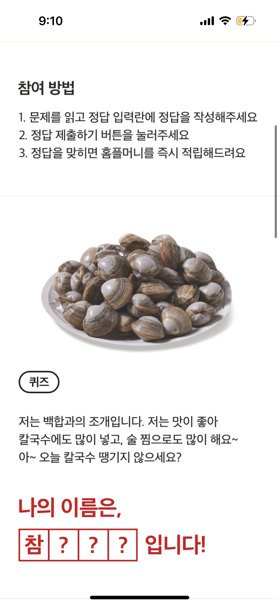 매주 목요일 오전 9시에 홈플 퀴즈를 통해서도