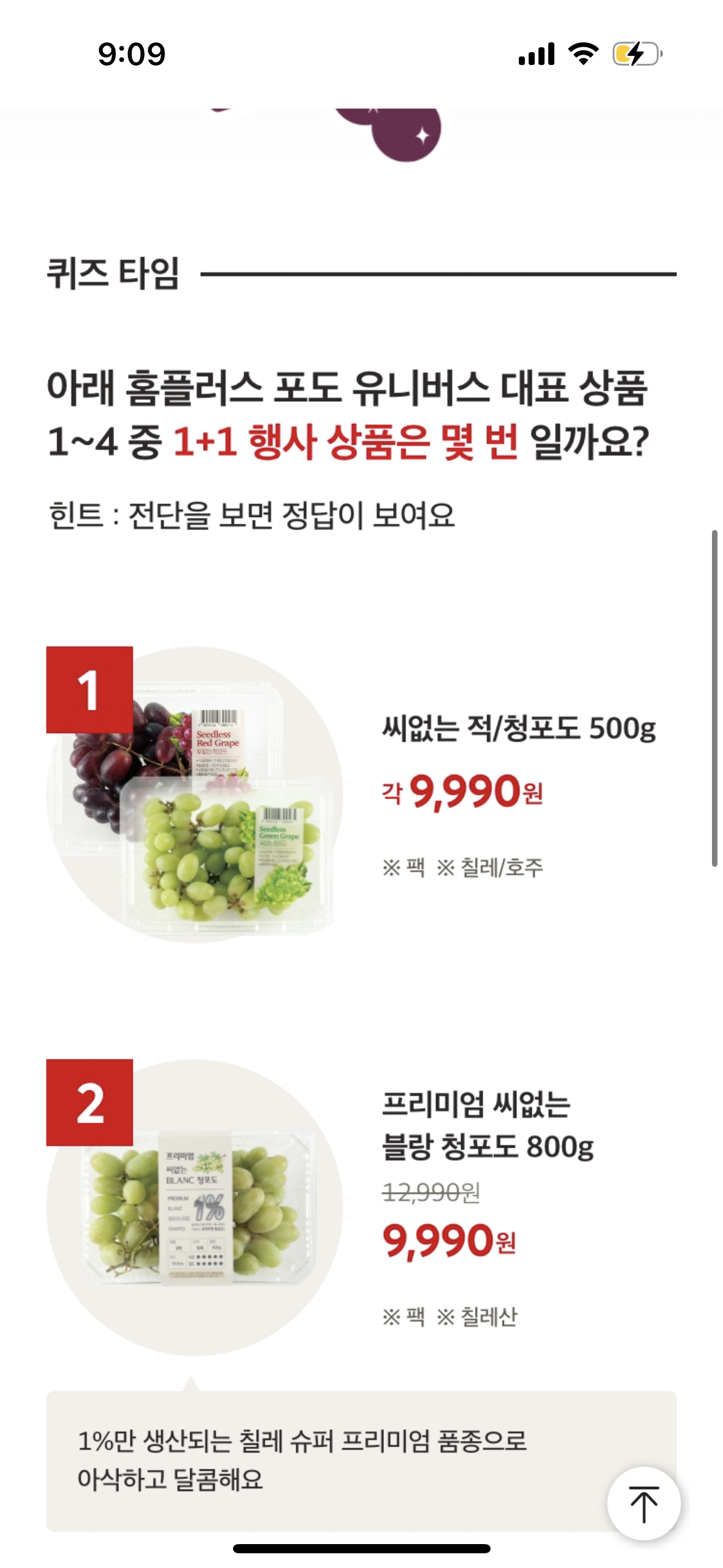 매주 목요일 오전 9시에 홈플 퀴즈를 통해서도