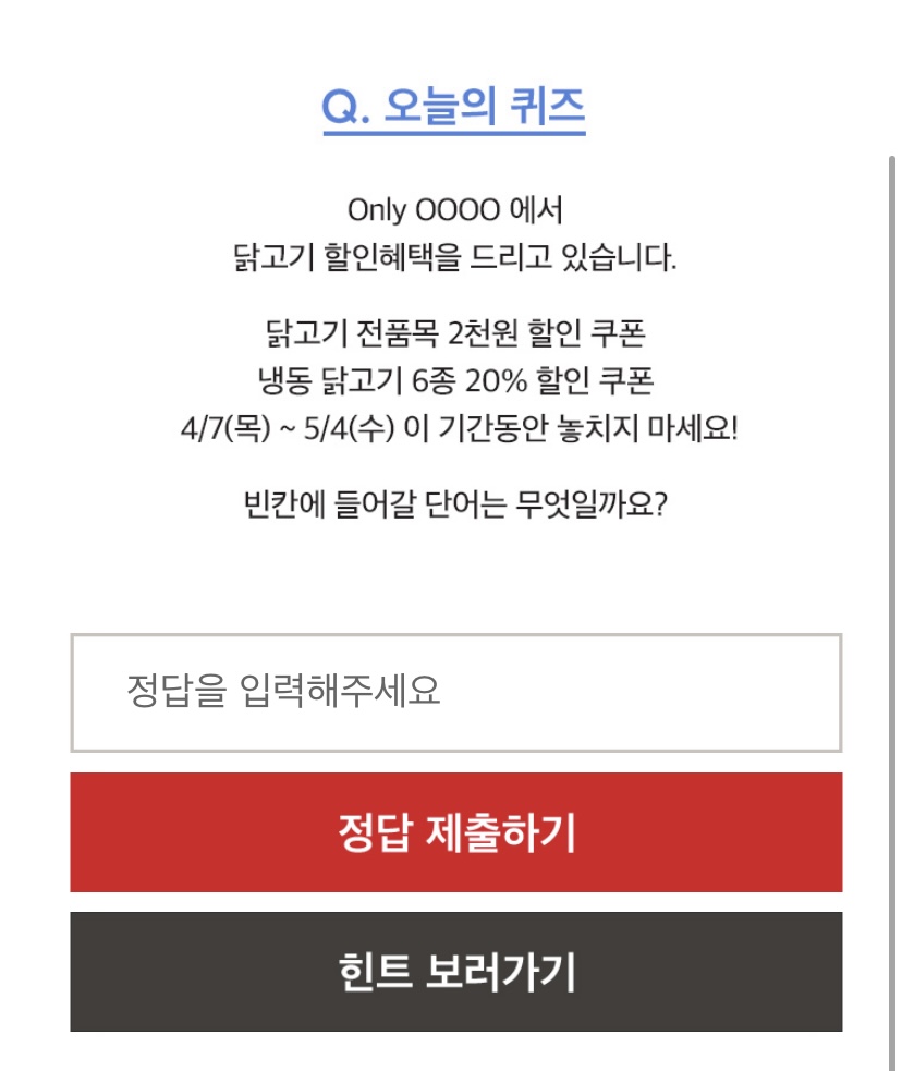 2022년 4월 12일 마이홈플러스 퀴즈 10시 정답