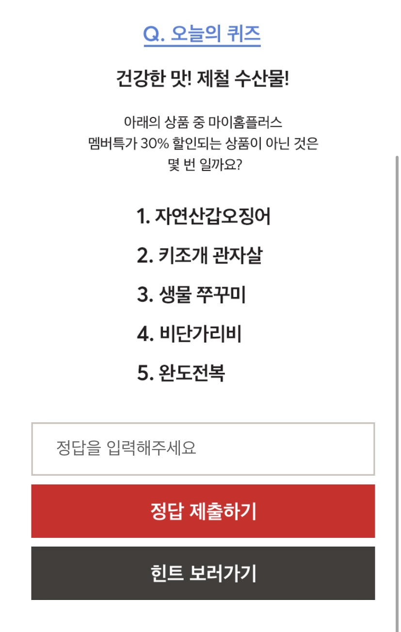 저는 홈플러스 퀴즈의 정답을