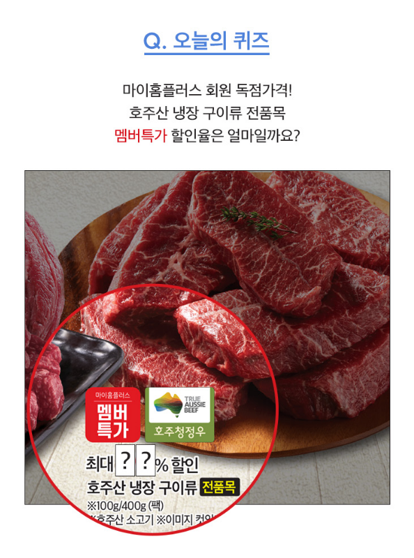 마이홈플러스 회원 독점가격!호주산 냉장 구이류 전품목멤버특가 할인율은 얼마일까요?최대OO% 할인호주산 냉장 구이류 전품목