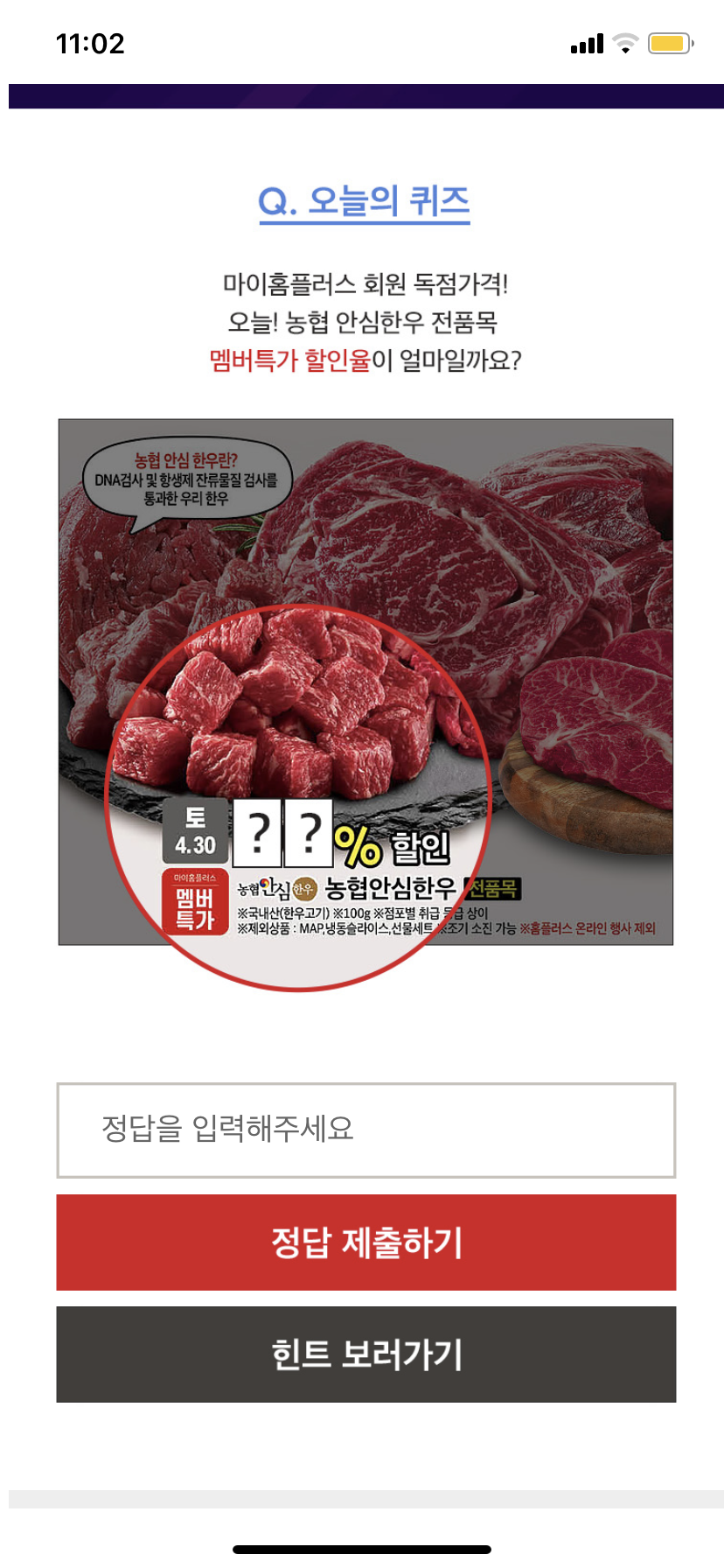 저는 홈플러스 퀴즈의 정답을
