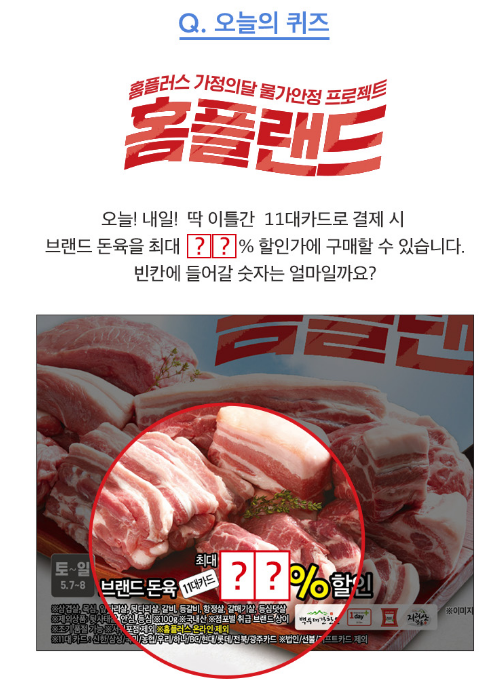 [마이홈플러스퀴즈] 2022년 5월 7일 "브랜드 돈육" 홈플퀴즈타임정답 (+퀴즈찾는법)