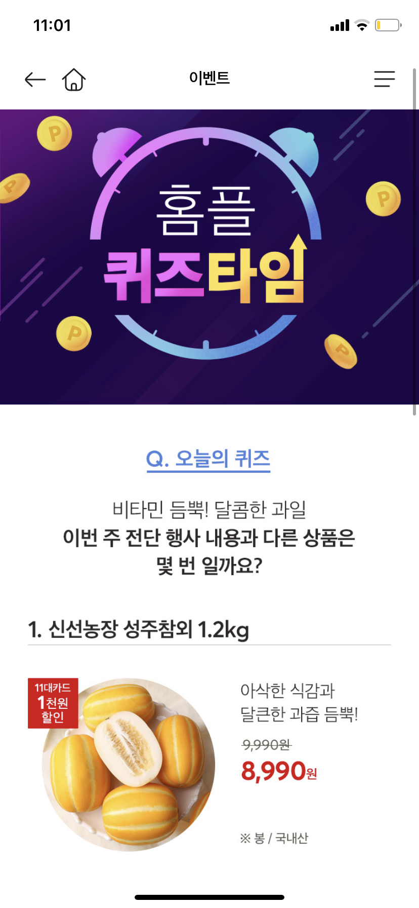 매일 오전 10시에 홈플 퀴즈를 통해서도