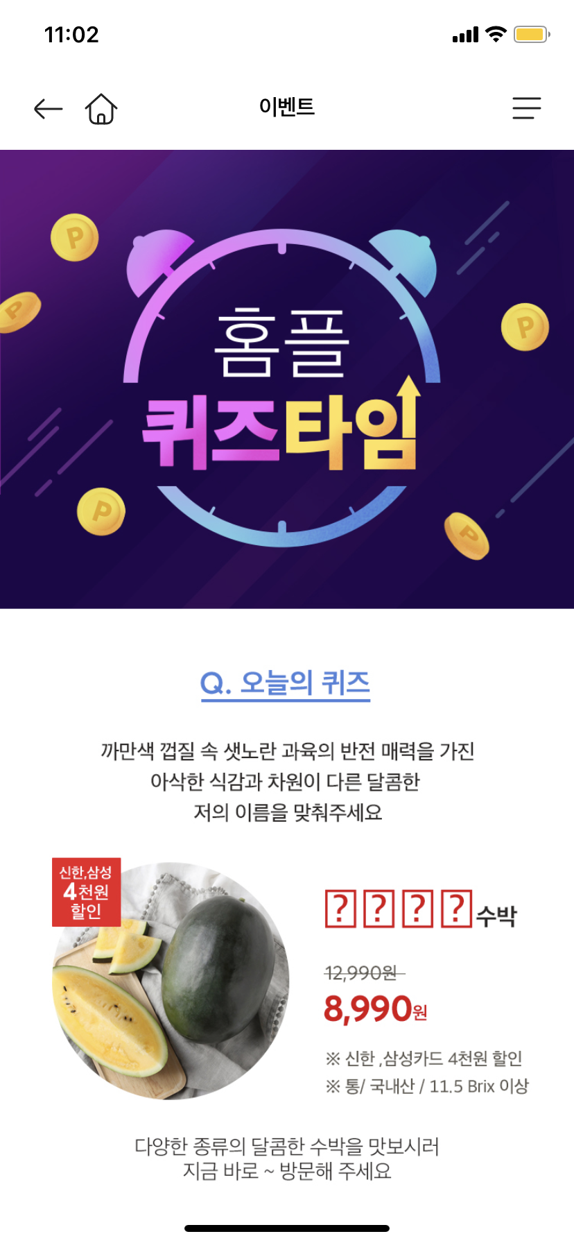 매일 오전 10시에 홈플 퀴즈를 통해서도