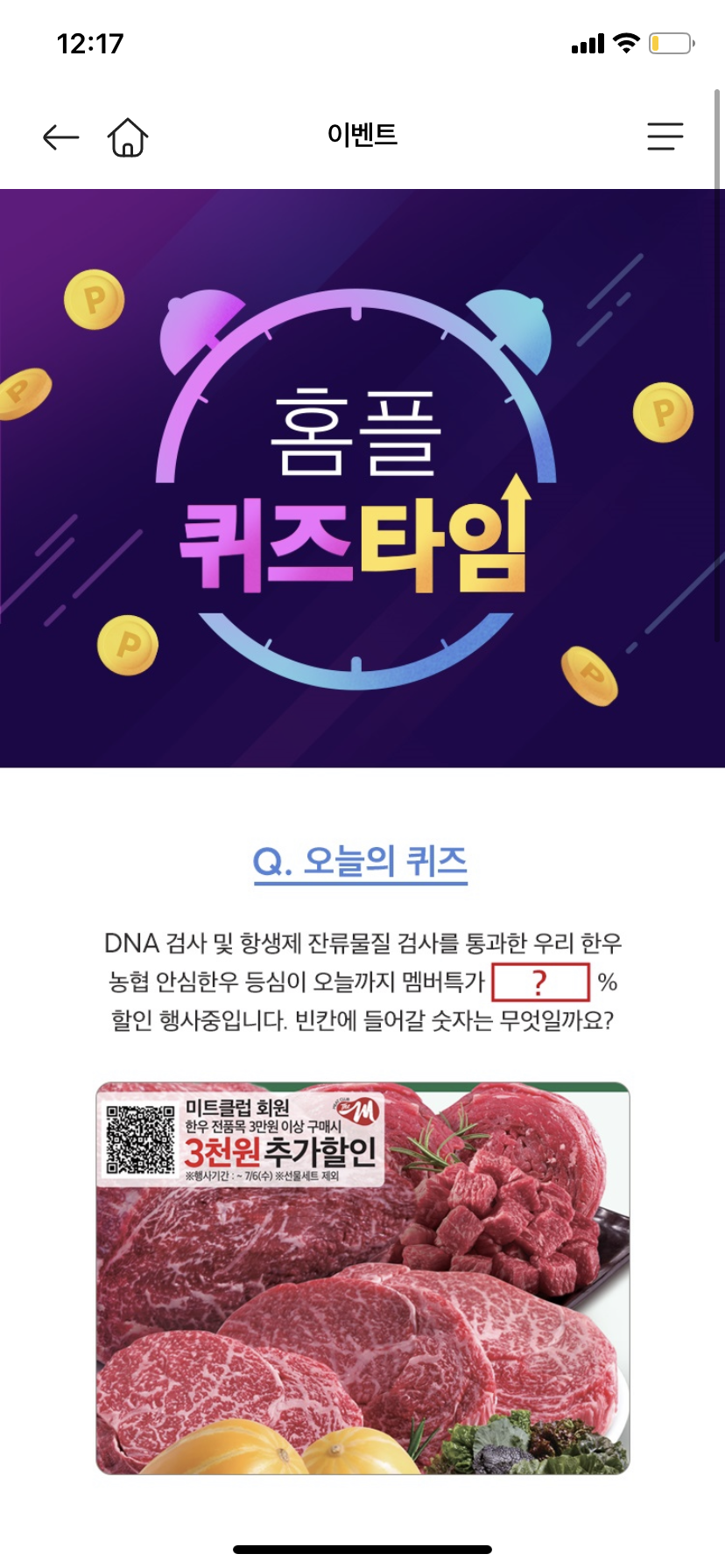 → 해당퀴즈는 홈플러스 어플 접속 및 로그인 - 오른쪽 상단바 - #어머 이 혜택은 홈플퀴즈클릭