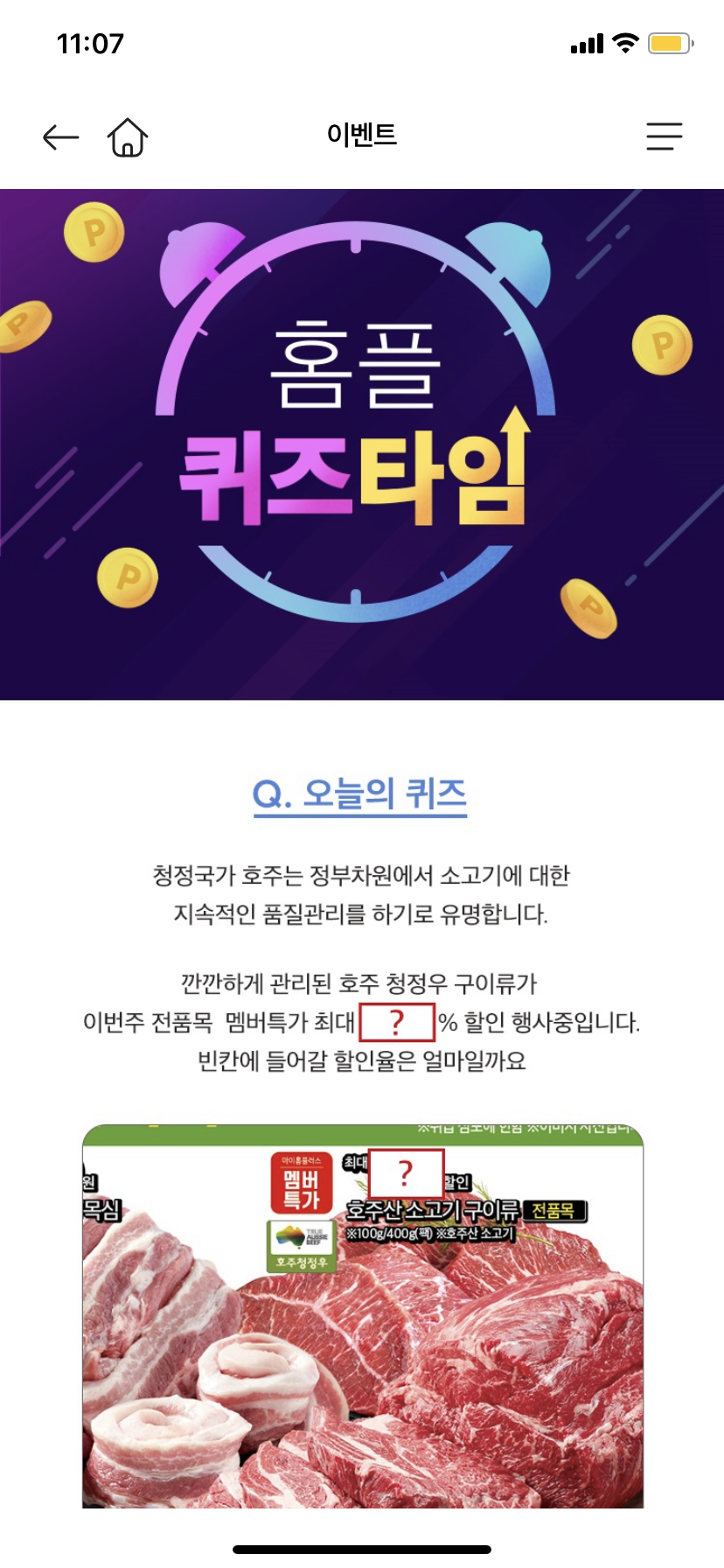 매일 오전 10시에 홈플 퀴즈를 통해서도