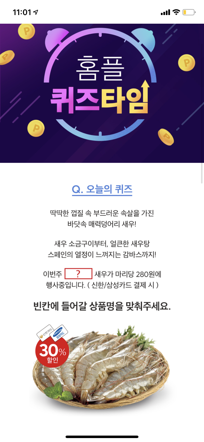 매일 오전 10시에 홈플 퀴즈를 통해서도