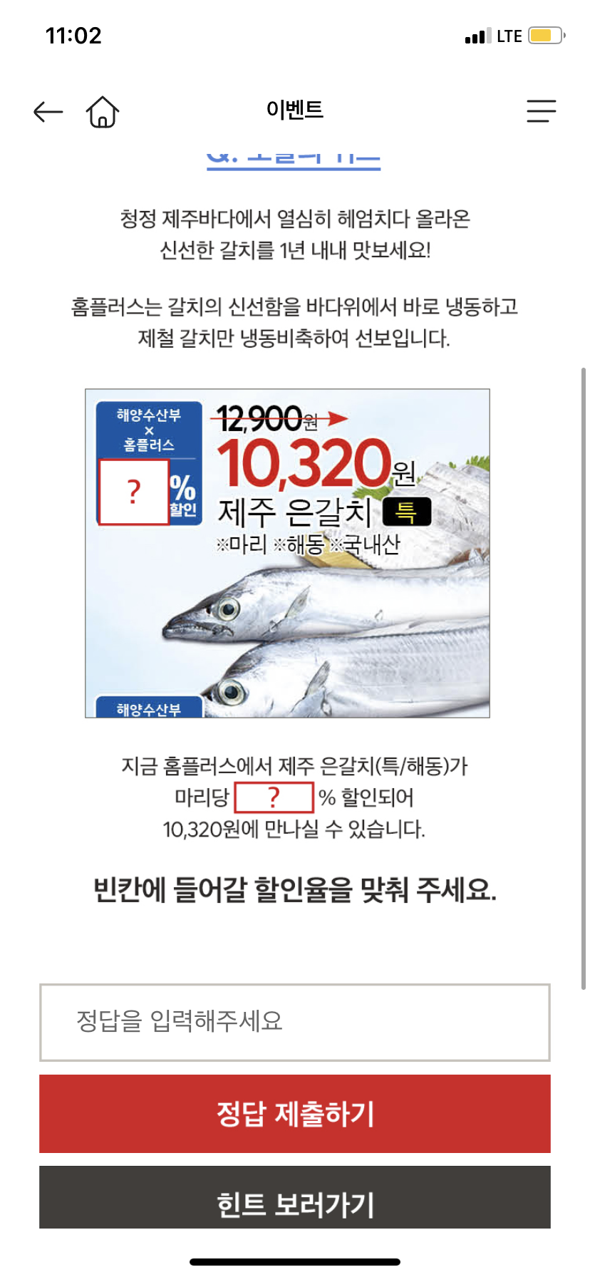 저는 홈플러스 퀴즈의 정답을