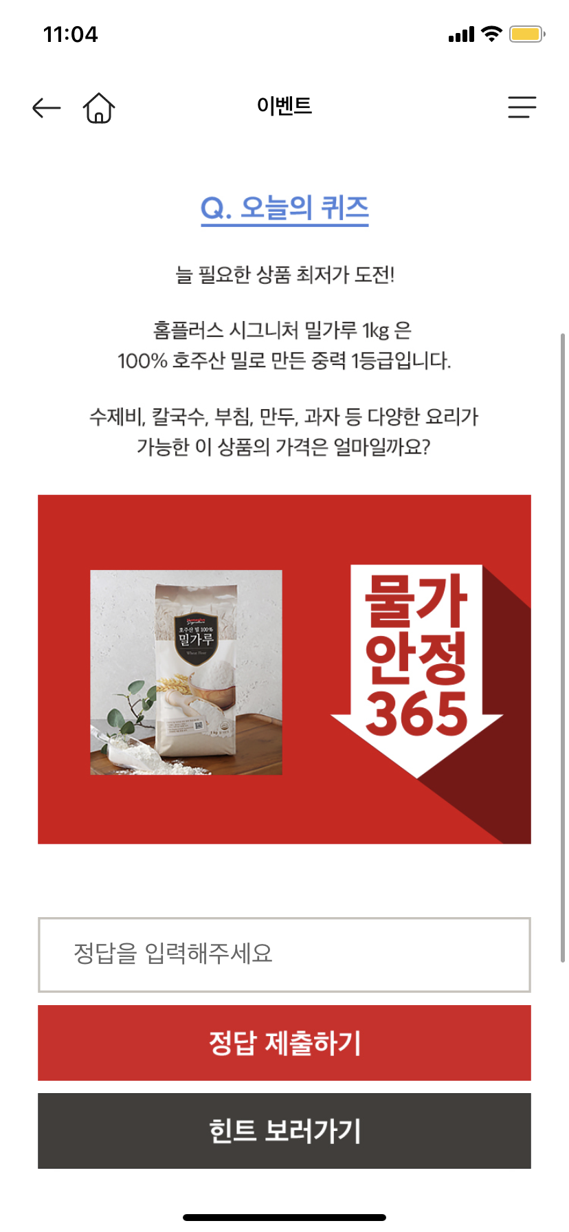 매일 오전 10시에 홈플 퀴즈를 통해서도