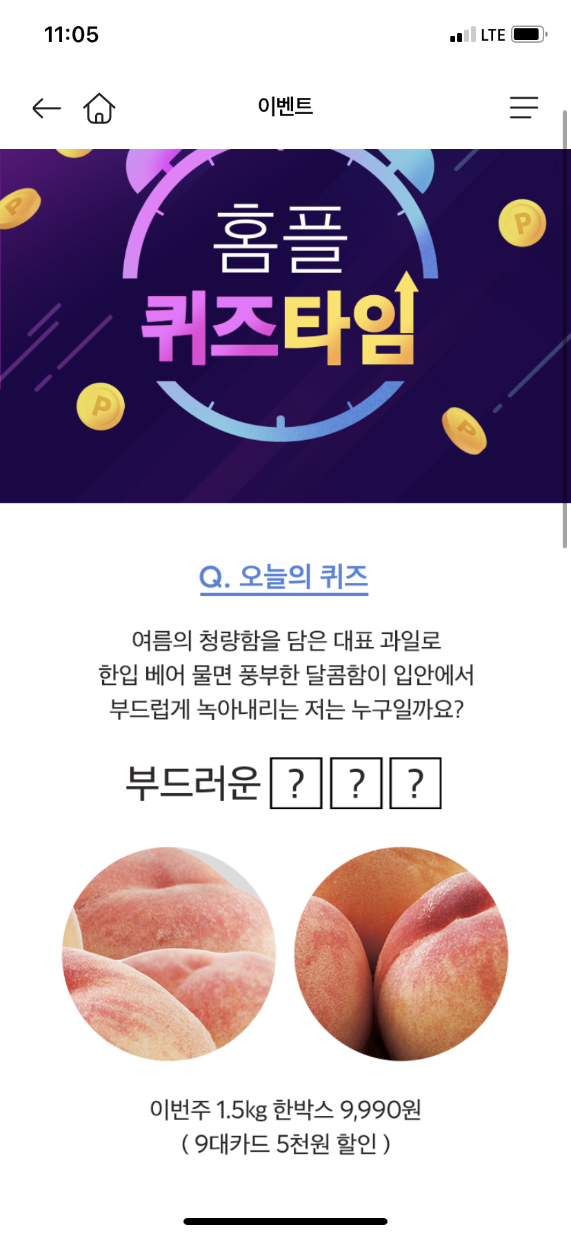 매일 오전 10시에 홈플 퀴즈를 통해서도
