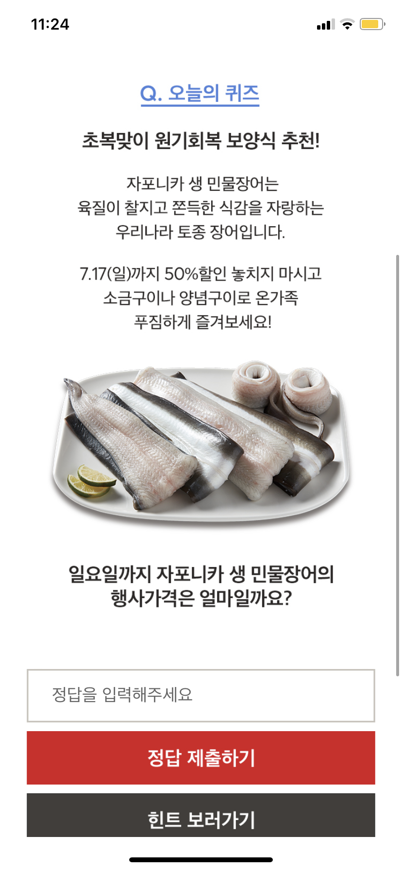 2022년 7월 15일 마이홈플러스 퀴즈 11시 정답