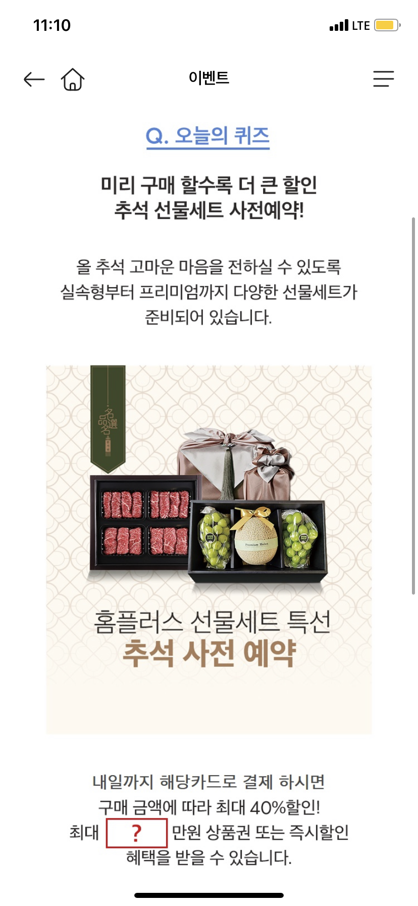 매일 오전 10시에 홈플 퀴즈를 통해서도