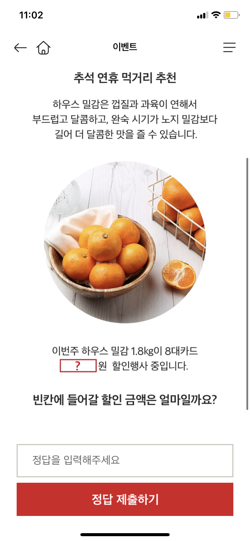 2022년 9월 12일 마이홈플러스 퀴즈 11시 정답