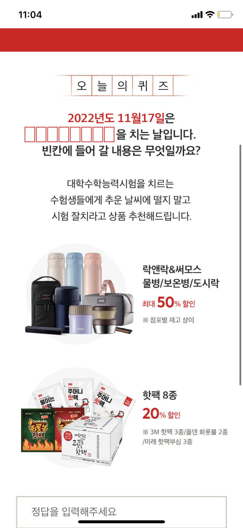 2022년 11월 10일 마이홈플러스 퀴즈 11시 정답