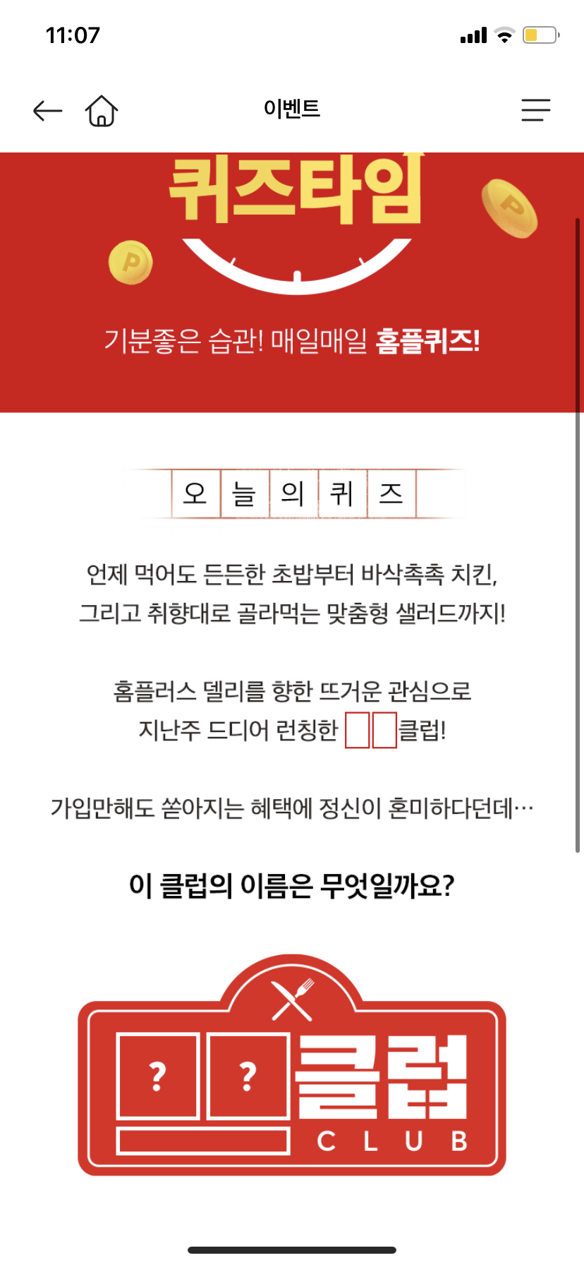 2022년 11월 14일 마이홈플러스 퀴즈 11시 정답