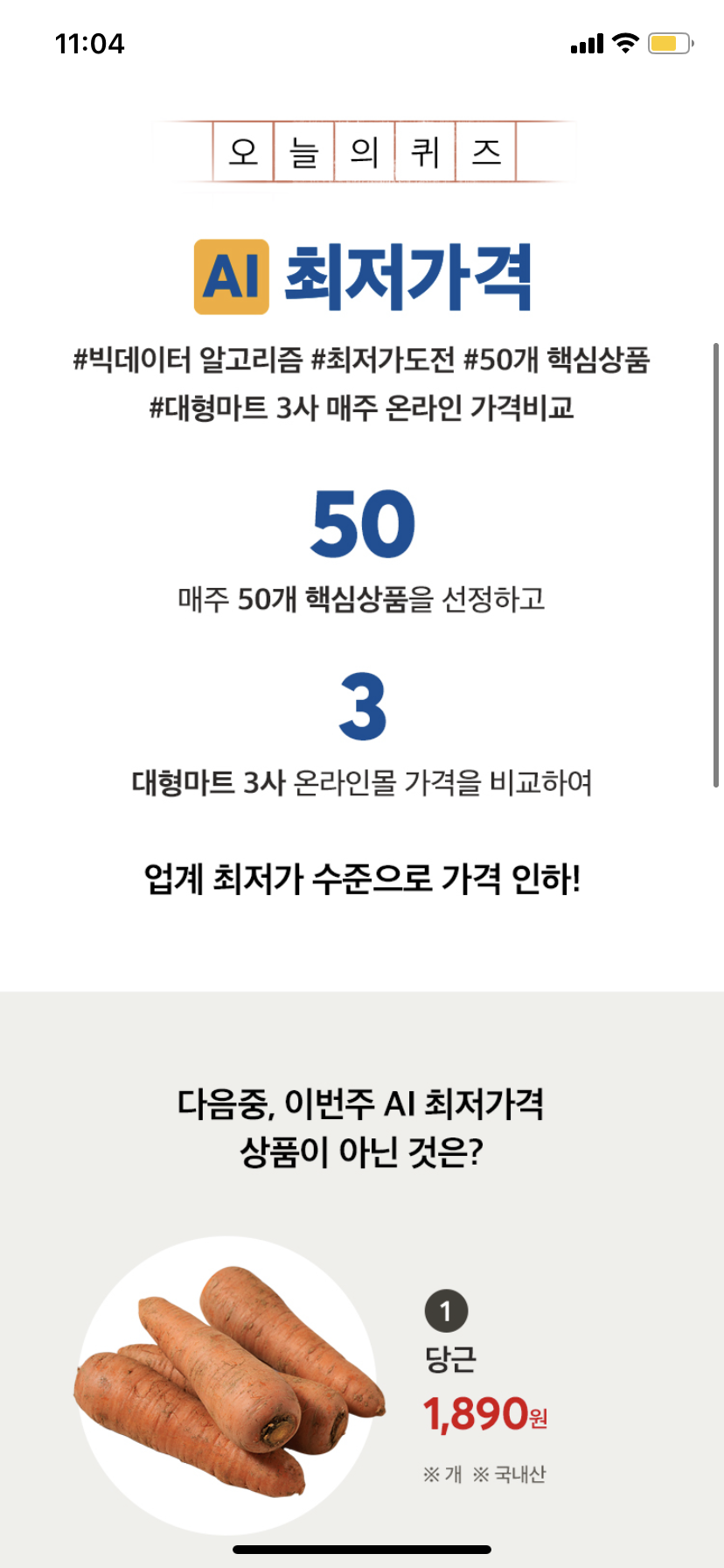 2022년 11월 16일 마이홈플러스 퀴즈 11시 정답