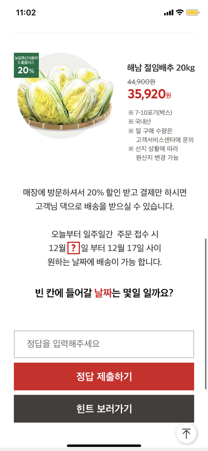 저는 홈플러스 퀴즈의 정답을