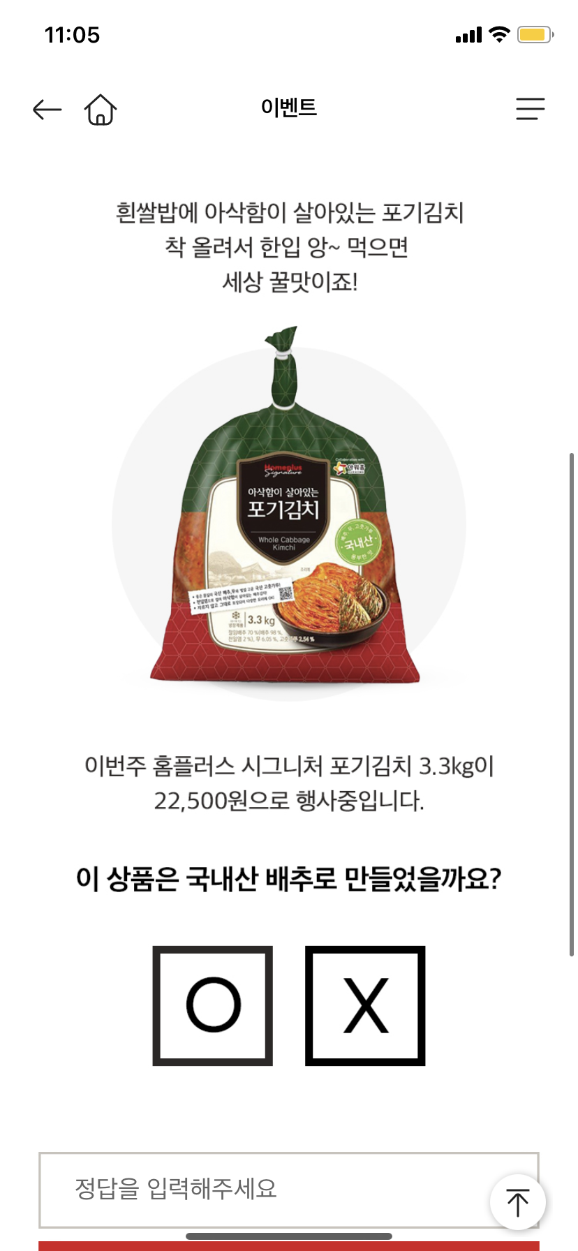 2022년 11월 23일 마이홈플러스 퀴즈 11시 정답