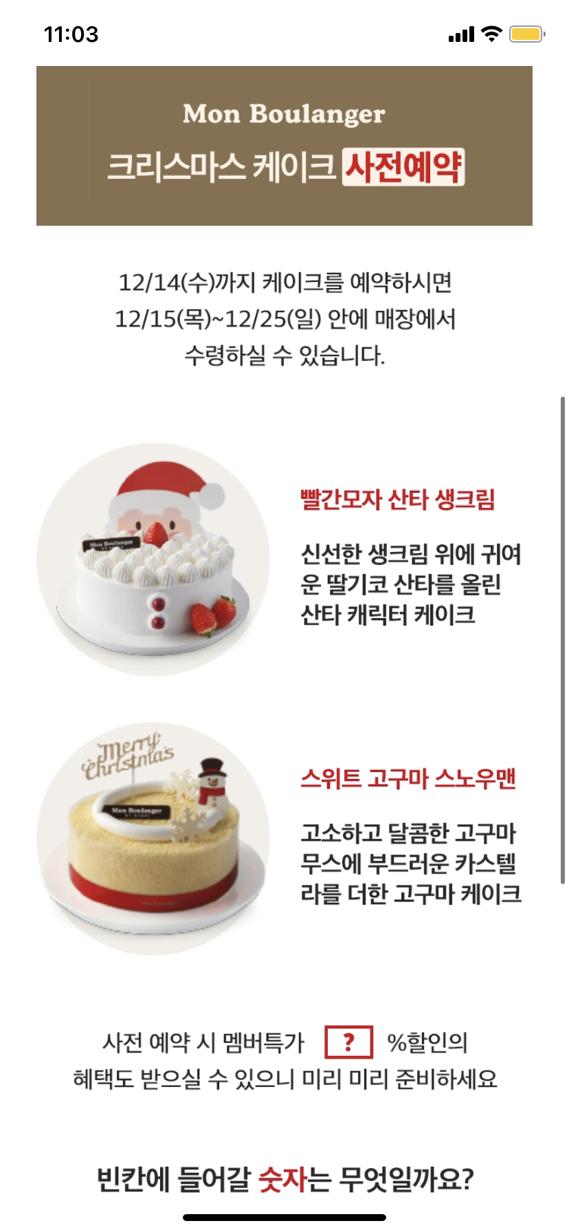 크리스마스 케이크 사전예약